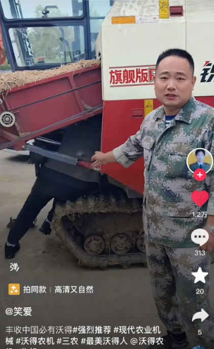 | 抖音 | 玩農(nóng)機(jī)的壯壯(皖s) | 87717041942 | 沃得T恤衫 |
